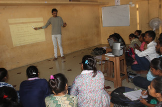 Breakfast was served from 9:00 AM to 10:00 AM for all facilitators. Following this, coordinators from the Dabhoi Community Foundation interacted with the teachers for a brief period. Mr. Ashishbhai's training session for the facilitators from various centers in Dabhoi took place from 10:00 AM to 1:00 PM. Concurrently, village-level facilitators received training from the DCF coordinator, focusing on classroom management skills and addressing common challenges in teaching.